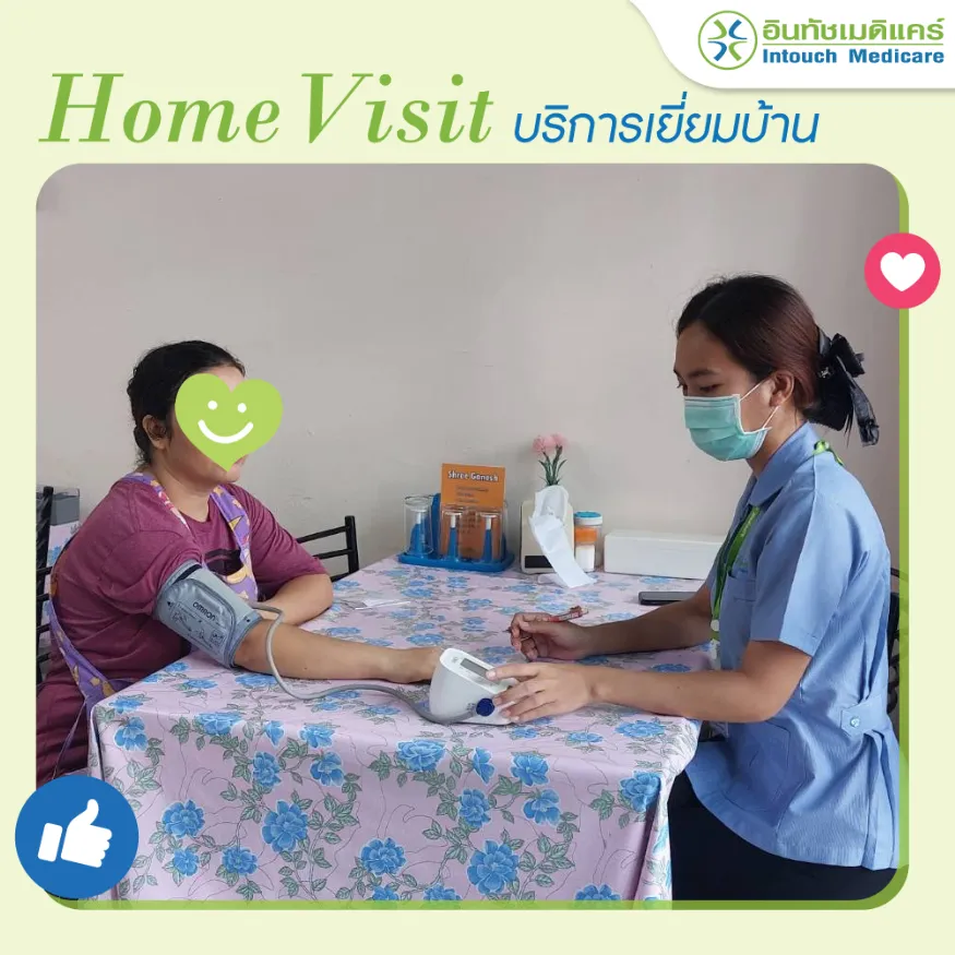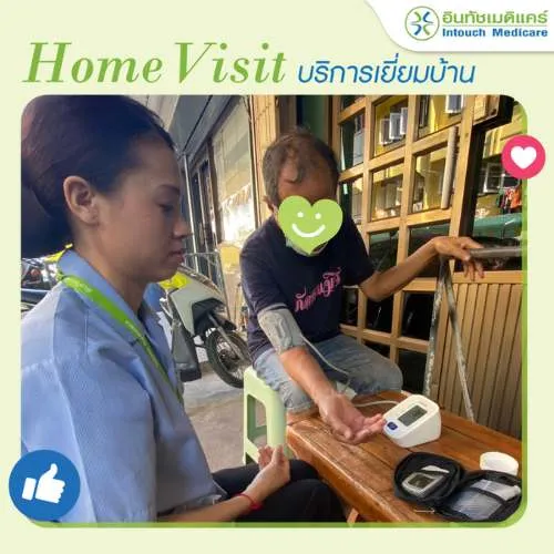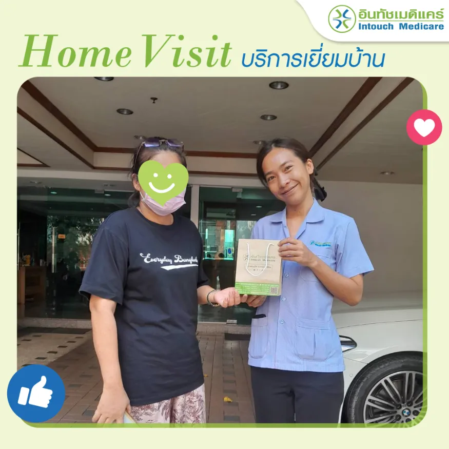 อินทัชเมดิแคร์ใส่ใจสุขภาพของคนไข้ทุกคน เรามีสาธารณสุขให้บริการเยี่ยมบ้านคนไข้หลังรับบริการกับอินทัชเมดิแคร์ เพื่อติดตามสอบถามอาการคนไข้อย่างต่อเนื่อง และให้คำแนะนำในการกินยา การปฏิบัติตัวเพื่อให้คนไข้มีสุขภาพที่ดีขึ้นค่ะ
