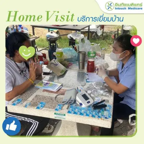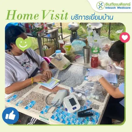 อินทัชเมดิแคร์ใส่ใจสุขภาพของคนไข้ทุกคน เรามีสาธารณสุขให้บริการเยี่ยมบ้านคนไข้หลังรับบริการกับอินทัชเมดิแคร์ เพื่อติดตามสอบถามอาการคนไข้อย่างต่อเนื่อง และให้คำแนะนำในการกินยา การปฏิบัติตัวเพื่อให้คนไข้มีสุขภาพที่ดีขึ้นค่ะ