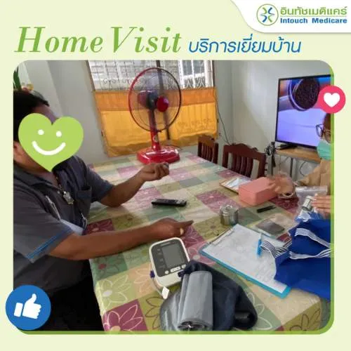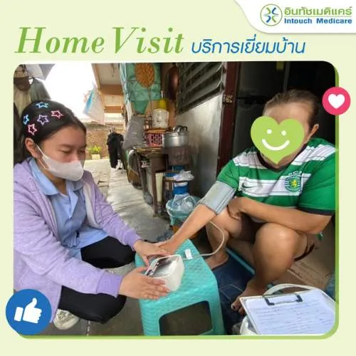 อินทัชเมดิแคร์ใส่ใจสุขภาพของคนไข้ทุกคน เรามีสาธารณสุขให้บริการเยี่ยมบ้านคนไข้หลังรับบริการกับอินทัชเมดิแคร์ เพื่อติดตามสอบถามอาการคนไข้อย่างต่อเนื่อง และให้คำแนะนำในการกินยา การปฏิบัติตัวเพื่อให้คนไข้มีสุขภาพที่ดีขึ้นค่ะ