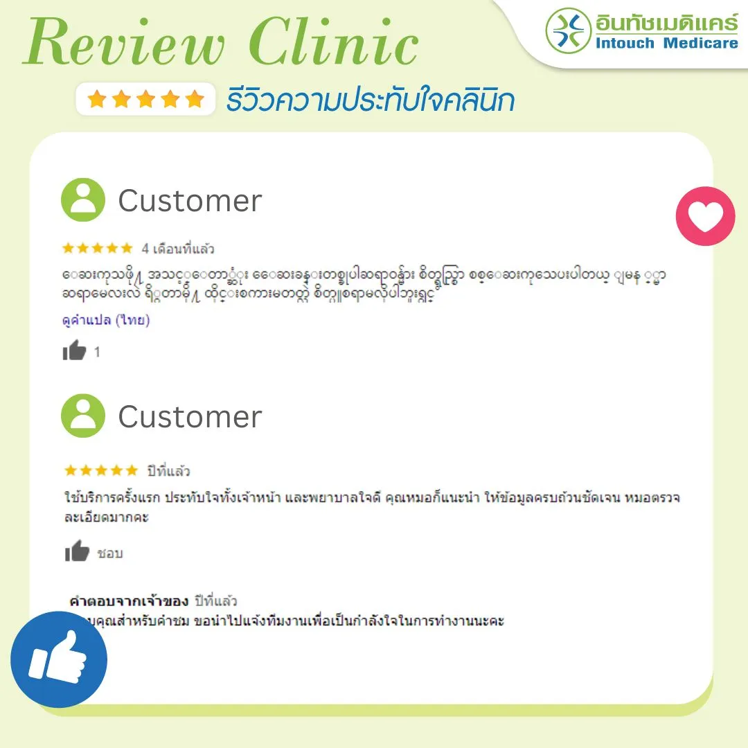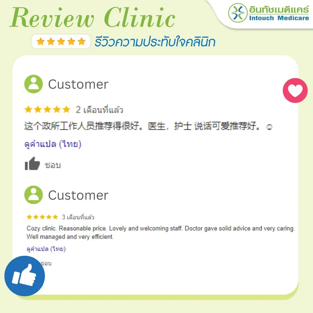 รวมรีวิวผู้ที่มารับบริการจริงที่อินทัชเมดิแคร์สาขาดินแดงเพื่อบอกต่อกับผู้ที่กำลังมองหาคลินิกใกล้บ้าน เรายินดีให้บริการและส่งมอบสุขภาพดีให้กับทุกคนค่ะ